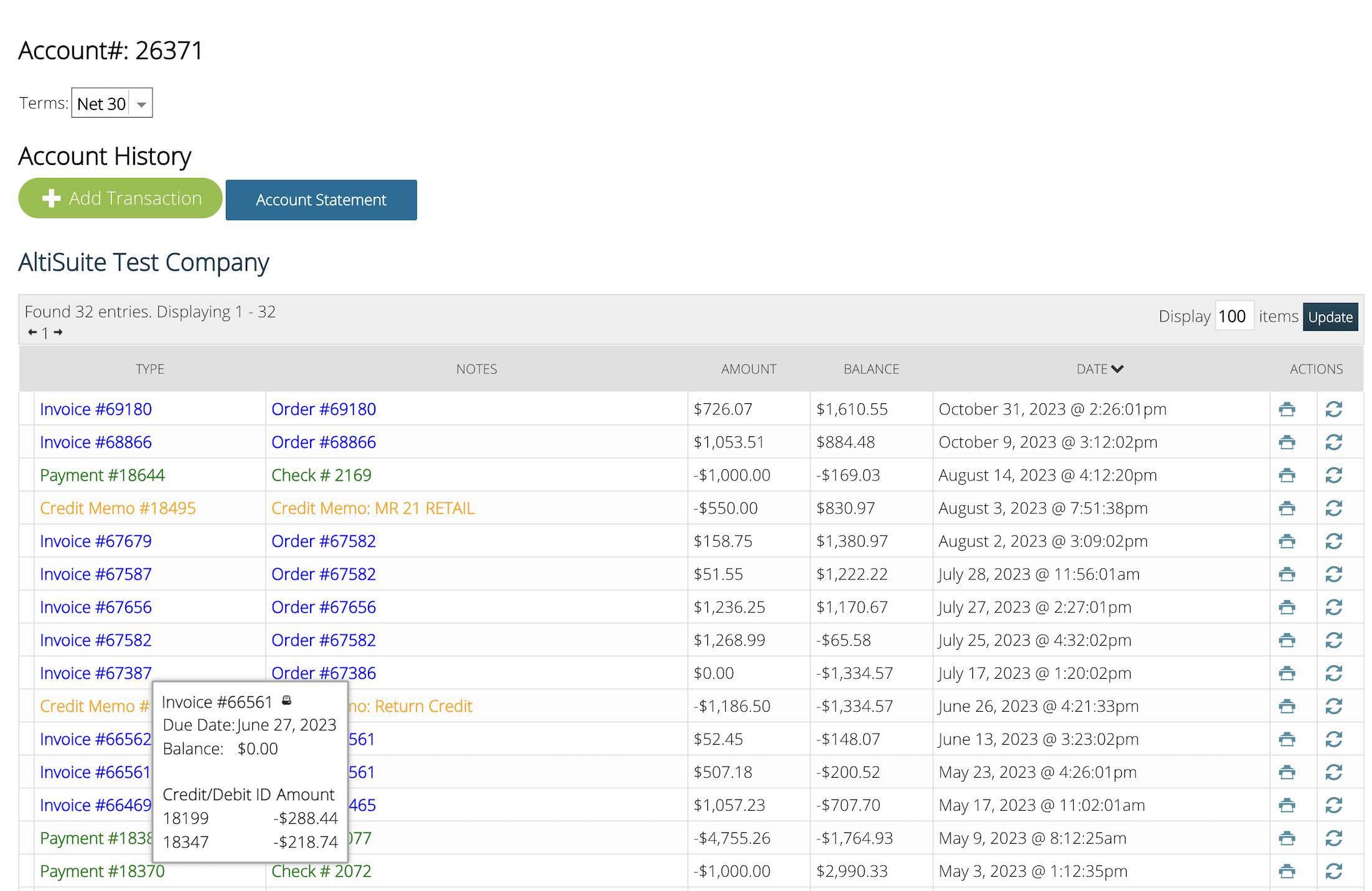 Streamline your billing and collections process with AltiSuite's powerful Accounts Receivable system. Automated emails for invoicing, detailed aging reports, and comprehensive statements make it easy for both you and your customers to keep track of balances and stay informed. With just a few clicks, you can record payments received via check, EFT, and credit memos, as well as accept credit card payments and securely store customer cards for future transactions. For added convenience, give your customers the option to make payments through their online portal, where they can also receive notifications for upcoming due dates, successful payments, and past-due bills. AltiSuite simplifies the accounts receivable process, ensuring that you get paid faster and your customers have a seamless payment experience.