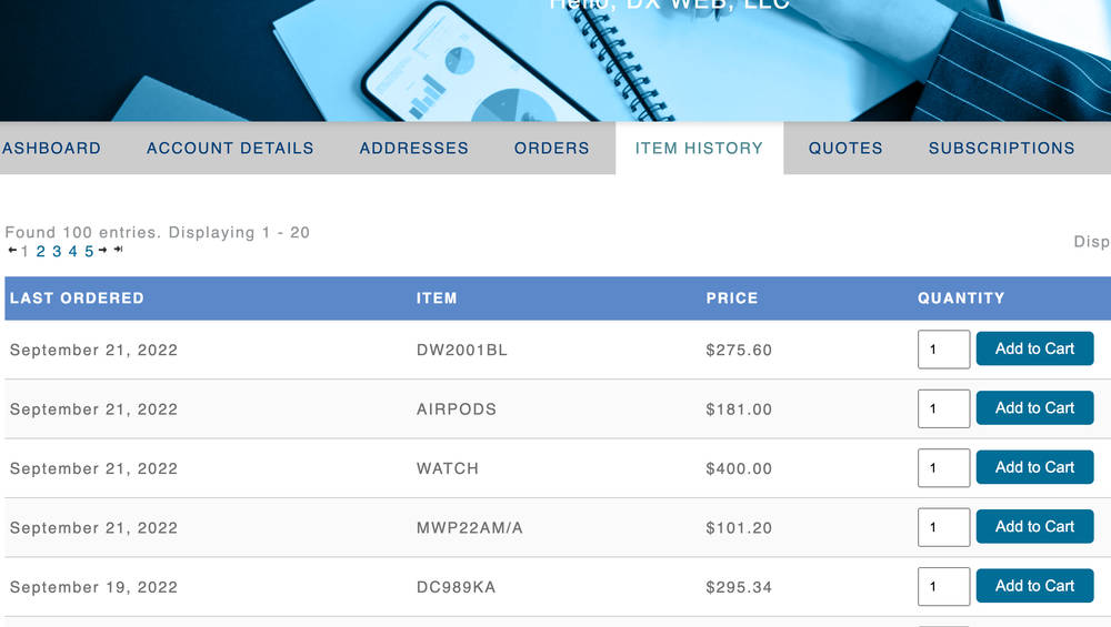 Quick Ordering:For those who know exactly what they want, customers can swiftly create a quick order from past ordered products or by inputting the SKU.